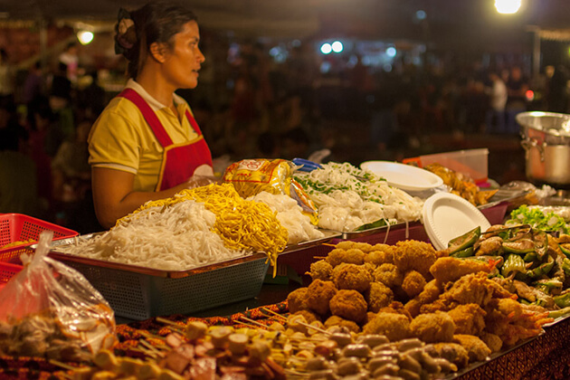 When living a nightlife in Cambodia and visiting the famous night markets of Phnom Penh and Siem Reap, you will enjoy thousands of street food from many countries around the world. Chinese, Japanese, Korean, Thai, European, and Vietnamese cuisines are easily found in this area. In Siem Reap, you can find these dishes along the riversides or in Pub Street. In Phnom Penh, you can enjoy attractive food at the night markets, the back street, or the riverfront area in front of the Royal Palace. In addition to foreign dishes, there are many traditional Cambodian dishes such as Bai Sach Chrouk, Kuy Teav, Amok, ... at reasonable prices.