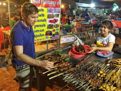 After a long way, you deserve fresh swimming or slowly explore the local market. Your Food Tour will start at 4:30 pm on a lovely Tuk-Tuk. Your food journey will begin from some small local restaurants to the market where you can try many cuisines of Cambodian and see some local herbs and ingredients. On the way, you will catch some food stalls sell fruit shakes, which is an attractive trait in the Cambodian food culture. Khmer cuisine is a beautiful combination of freshness, wonderful flavors, and textures.
